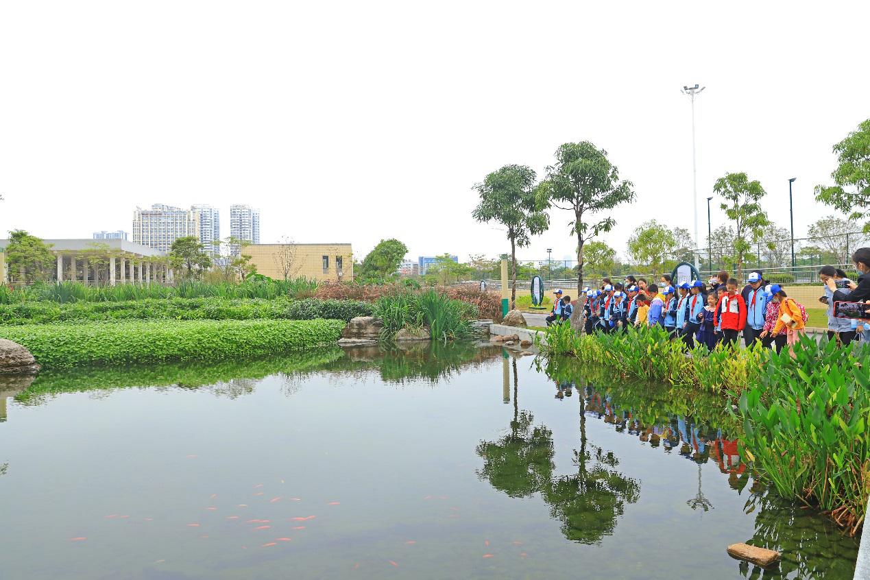 在中水回用景觀點“在水一方”,孩子們加深了對“中水回用”了解。