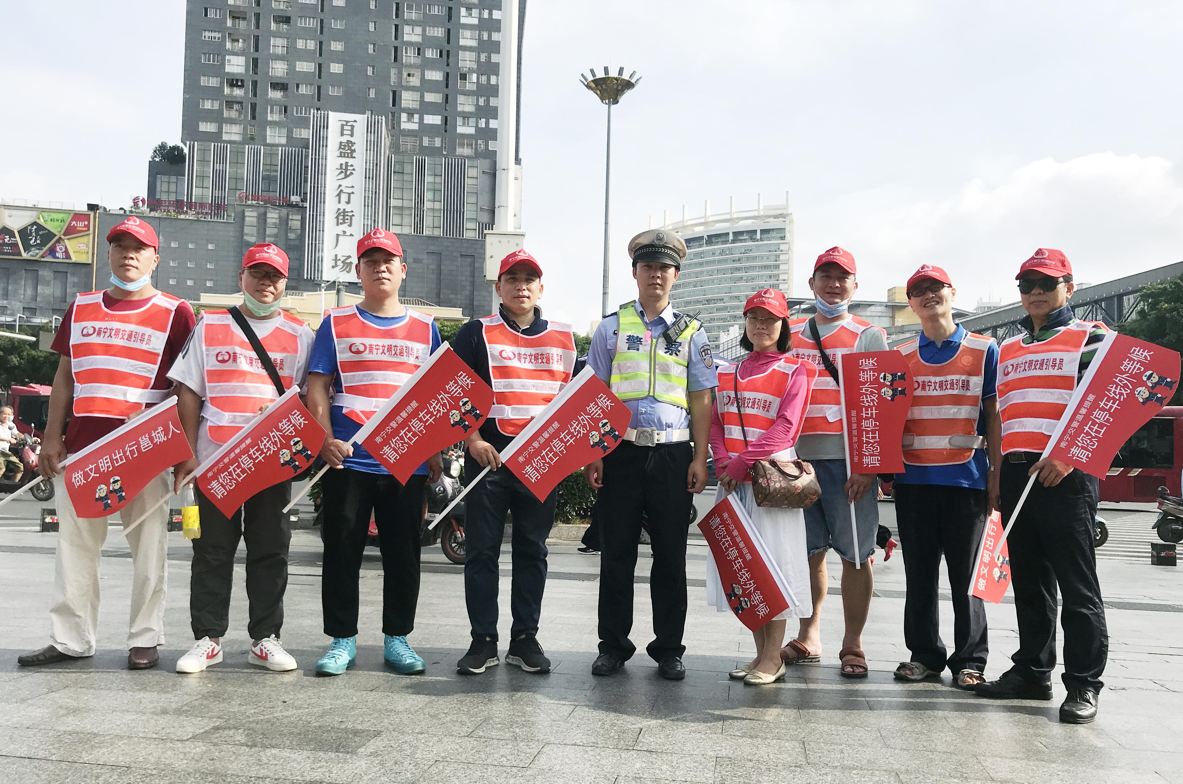 近期,公司中心調度室、陳村水廠、西郊水廠、江南污水處理廠的志愿者們出現在南寧市交通繁華的交通路口,早上七點半,志愿者們就紛紛提前到崗,接受交警的崗前培訓。活動中,炎炎烈日下,他們一絲不茍認真履行工作職責,對闖紅燈、逆行、走快車道等交通違法行為的非機動車駕駛人進行勸阻、提醒市民文明交通禮讓,同時耐心解答市民詢問、協助老幼病殘孕等特殊行人安全過馬路,攜手路口交警一起文明有序的出行環境。當天太陽雖然很大,當志愿者們絲毫沒有退縮,炎炎烈日下映紅的臉頰是城市街頭最美的那一抹“紅”。