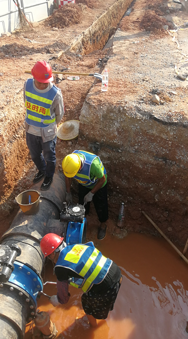 為確保項目加快推進,綠城水務派出精兵強將,連續晝夜奮戰,從項目獲批建設通水,僅用了20天時間便順利完成通水目標。8月19日,隨著閥門開啟,清澈的自來水流進南寧數字科技學院,確保了學院在開學前正式用上了水質優良、水壓穩定的自來水,解決了學校發展的燃眉之急